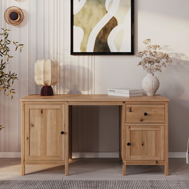 Mebel wykonany z litego drewna dębowego ( dziki dąb z sękami wypełnionymi czarną żywicą ). Wykończony lakierem dla właściwego zabezpieczenia. Wszystkie nasze meble drewniane w standardzie wyposażone są w prowadnice ( szuflady ) i zawiasy ( drzwiczki ) na Cichy domyk. Jest to bardzo wygodne rozwiązanie, które pozwala cieszyć się z produktu przez długie lata.