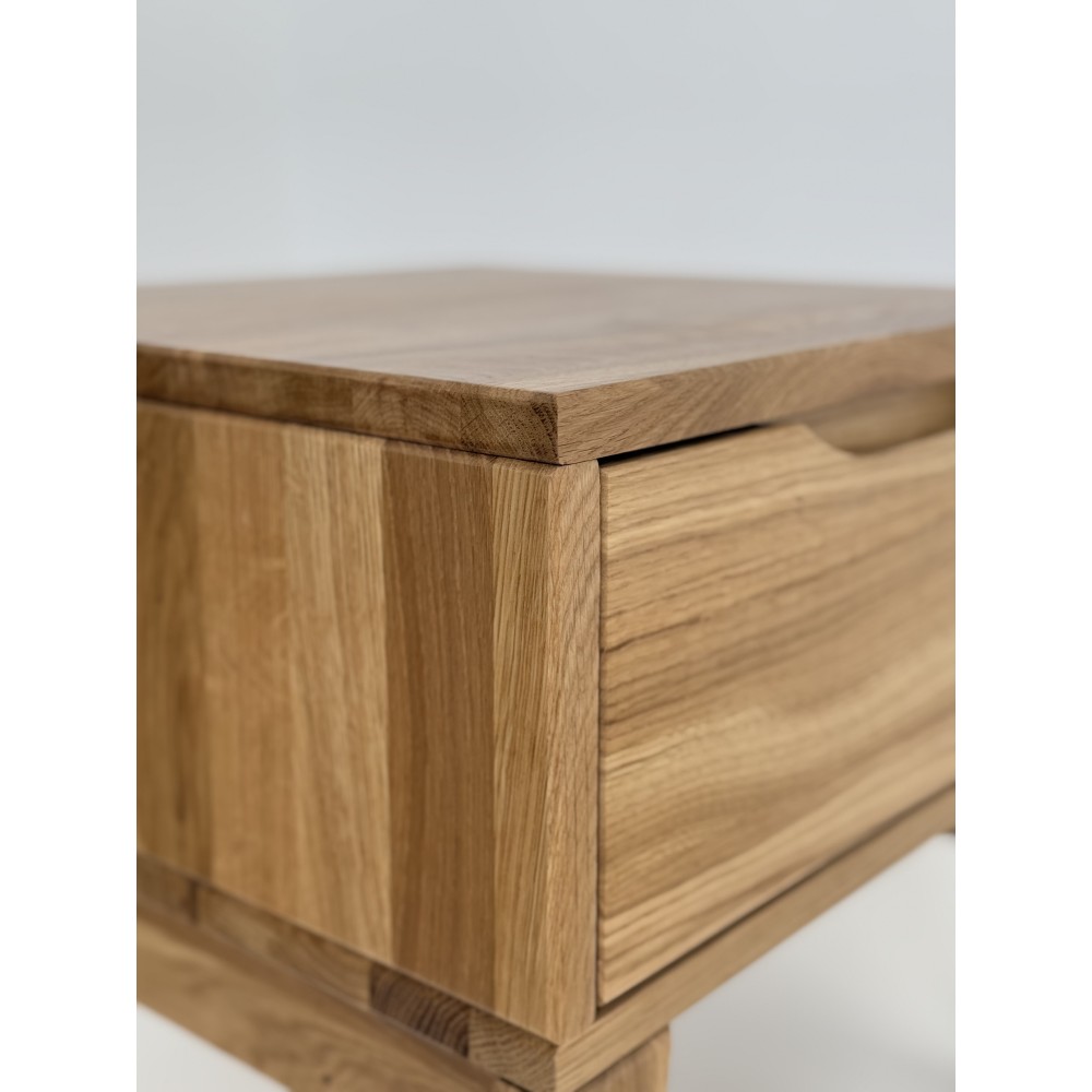 Mebel wykonany z litego drewna dębowego. Dzięki lakierowanemu wykończeniu, meble są odporne na zarysowania i łatwe w pielęgnacji.