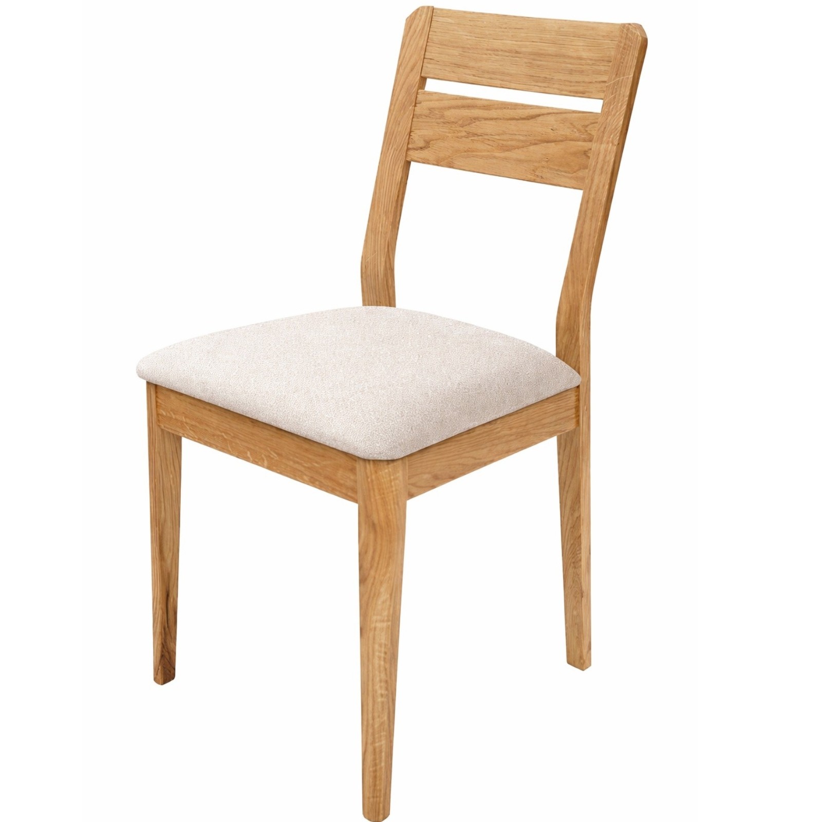 Krzesło dębowe z tapicerowanym siedziskiem MKR-35 to stylowe i funkcjonalne rozwiązanie do jadalni, kuchni oraz eleganckich wnętrz komercyjnych. Wykonane z litego drewna dębowego, wyróżnia się naturalnym usłojeniem i ciepłym kolorem, który podkreśla charakter wnętrza.