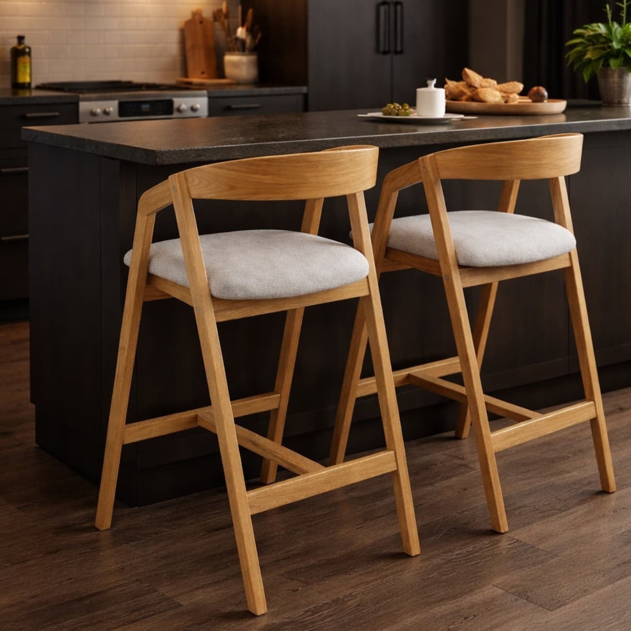 Hoker dębowy z tapicerowanym siedziskiem MH-7 to stylowe i wygodne krzesło barowe, które łączy naturalne materiały z nowoczesną formą. Doskonale sprawdzi się przy wyspach kuchennych, wysokich stołach oraz w przestrzeniach barowych i restauracyjnych.
