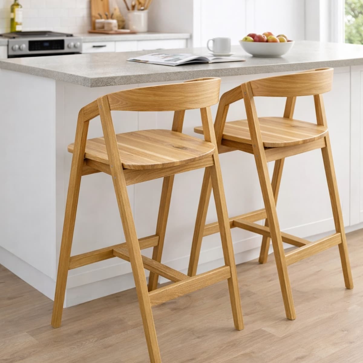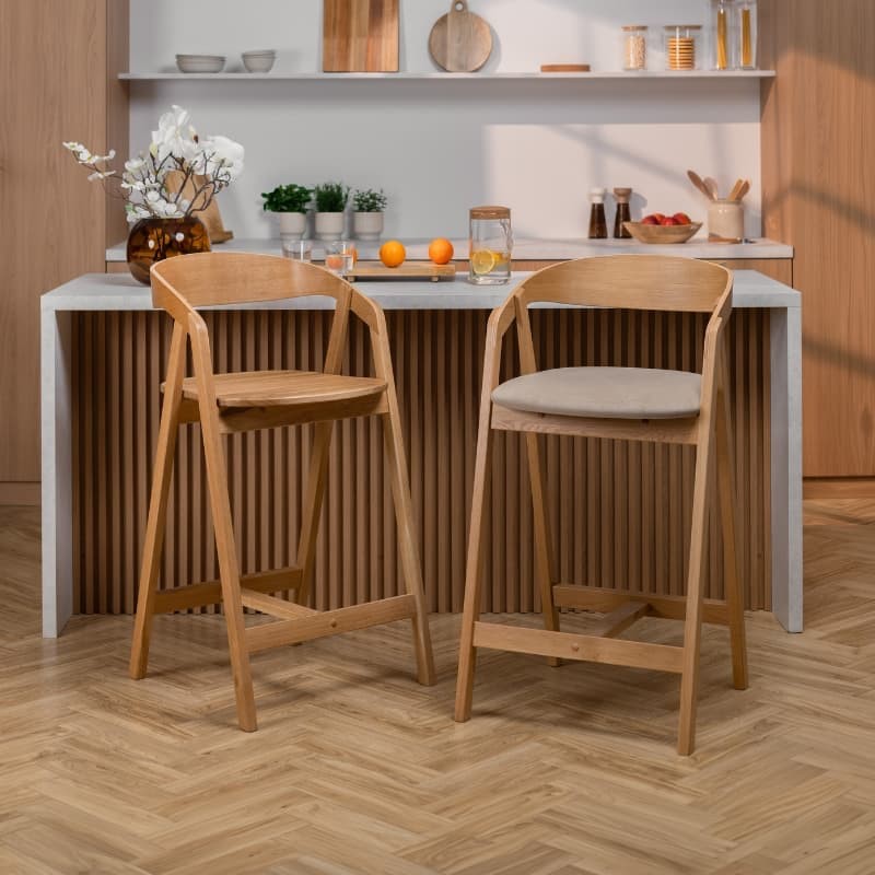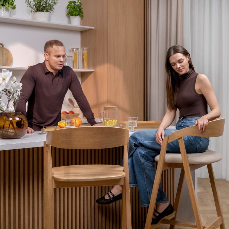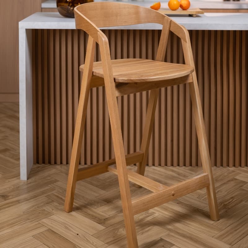 Solidna konstrukcja z litego drewna dębowego zapewnia stabilność i trwałość, a wyprofilowane oparcie gwarantuje wygodne podparcie pleców. Naturalne usłojenie drewna nadaje hokerowi ponadczasowy wygląd i sprawia, że doskonale komponuje się z wnętrzami w stylu nowoczesnym, skandynawskim oraz industrialnym.