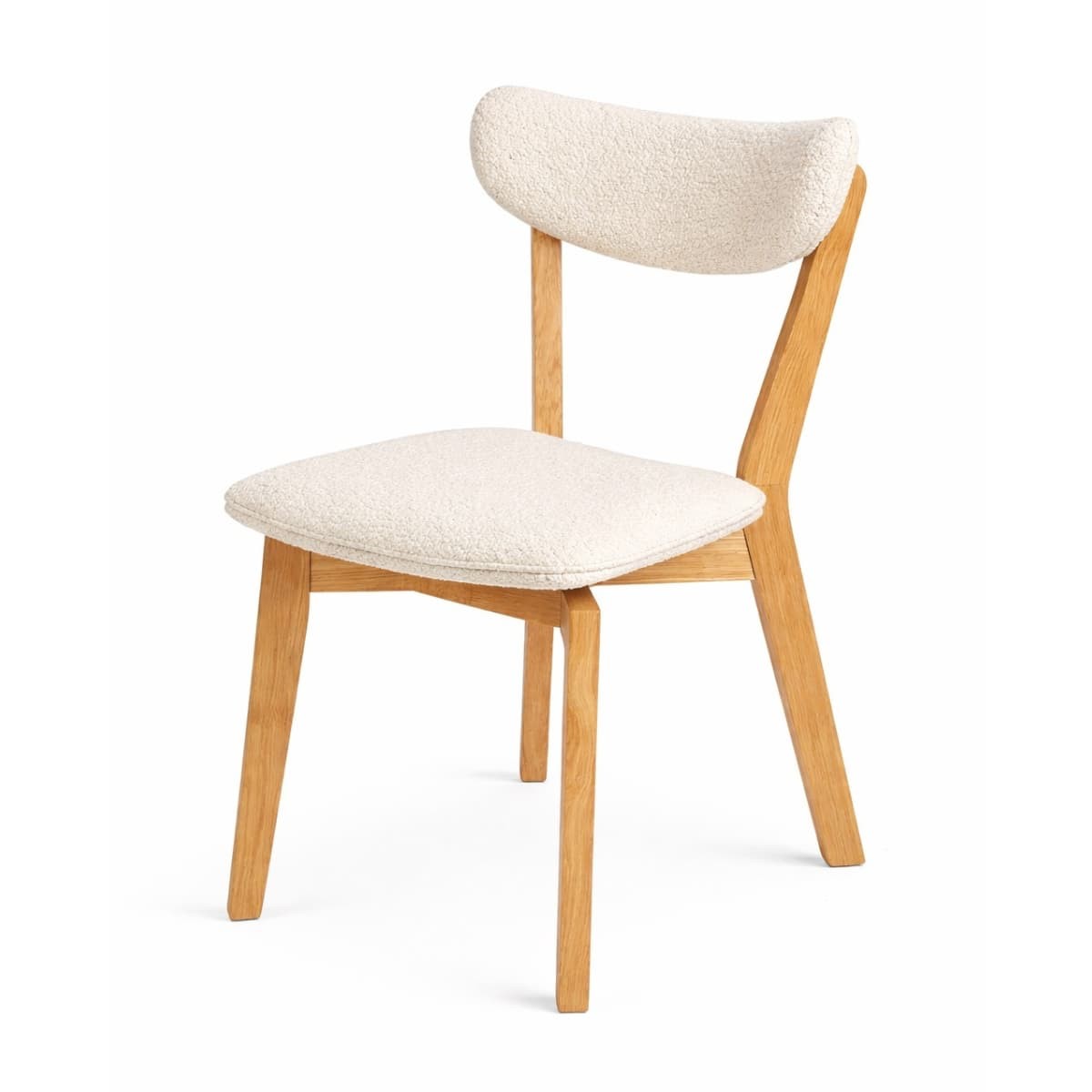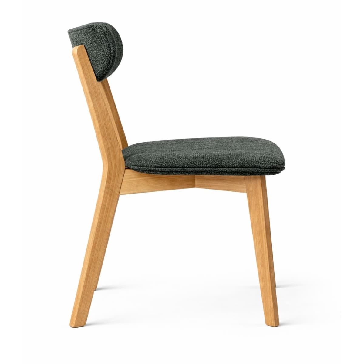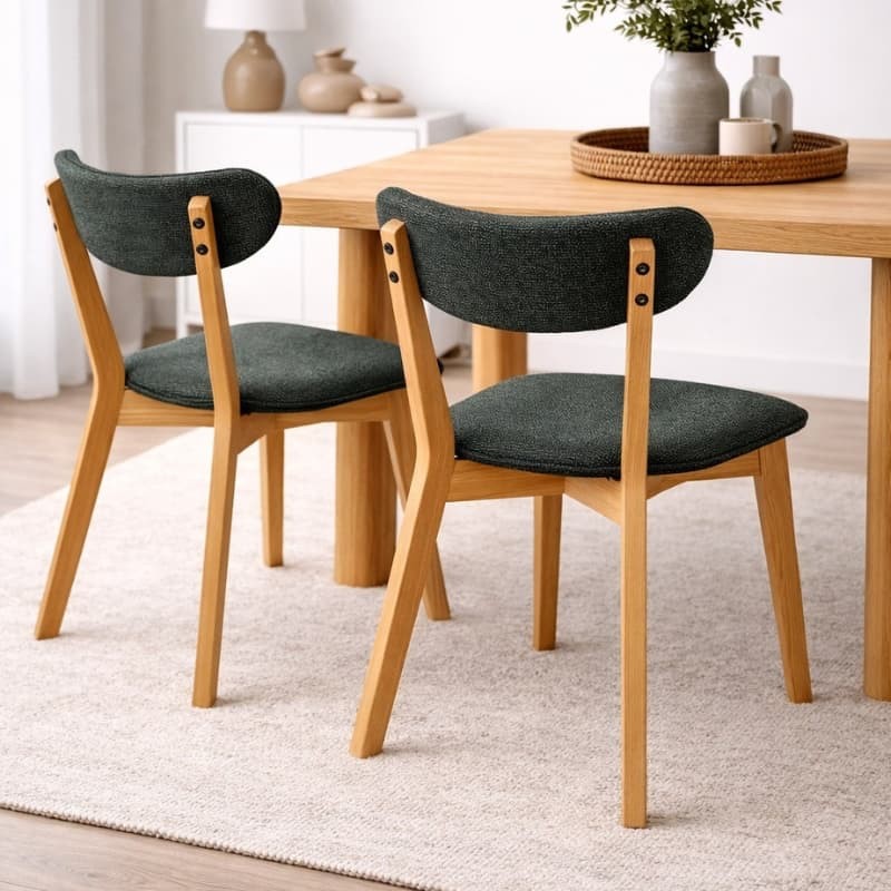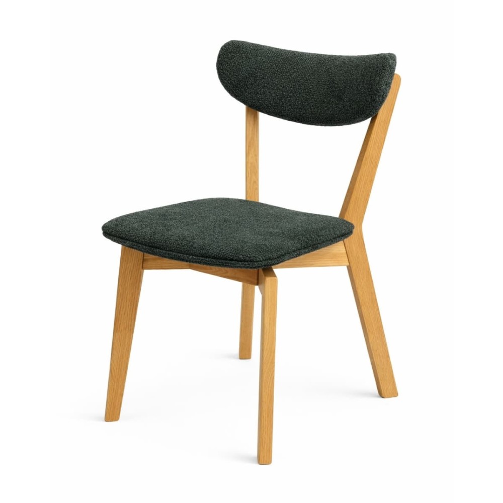 Konstrukcja wykonana z litego drewna dębowego zachwyca naturalnym usłojeniem i ciepłym odcieniem, który kontrastuje z tapicerowanym siedziskiem i oparciem. Miękka tapicerka zwiększa komfort siedzenia i dostępna jest w różnych wariantach kolorystycznych oraz tkaninach, co pozwala dopasować krzesło do indywidualnej aranżacji wnętrza.