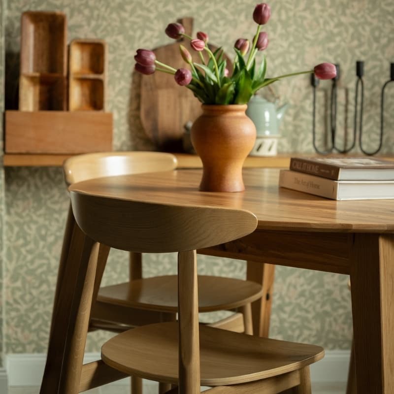 Krzesło drewniane bez tapicerki z zaokrąglonym oparciem – prostota i elegancja w stylu japandi