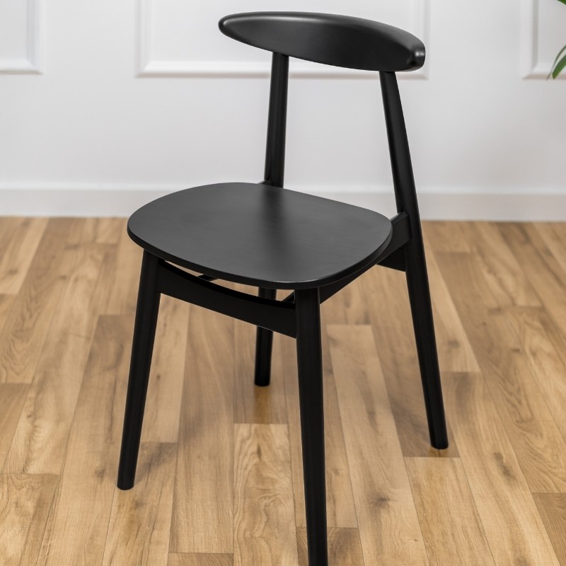 To eleganckie, w 100% drewniane czarne krzesło to kwintesencja czystości formy i spokojnej elegancji. Prosta sylwetka z subtelnie profilowanym oparciem w kształcie łuku oraz płaskim siedziskiem bez tapicerki tworzy ponadczasowy mebel, który odnajdzie się w każdym wnętrzu nastawionym na minimalizm, równowagę i harmonię.