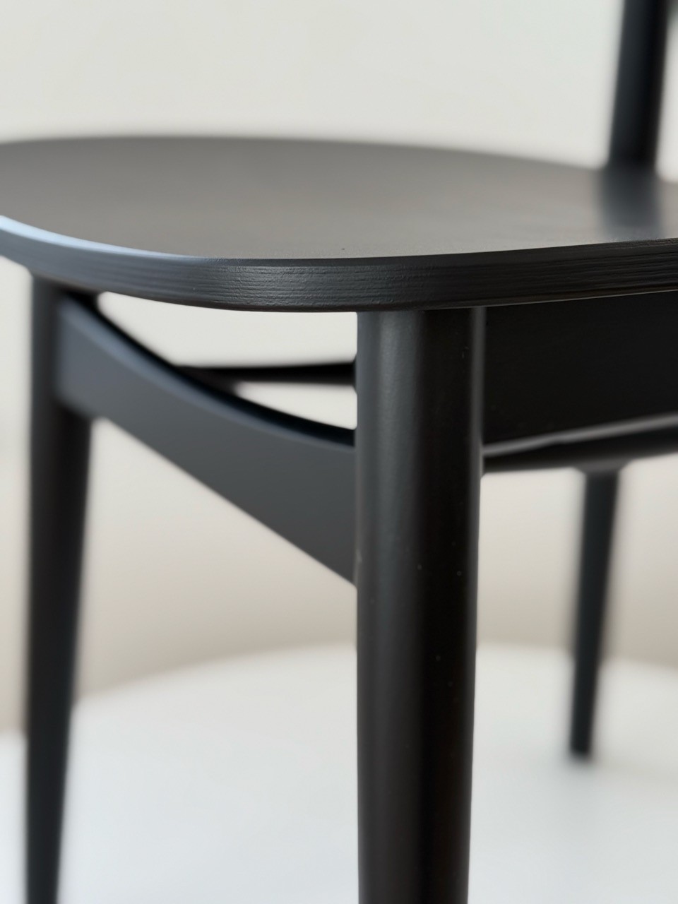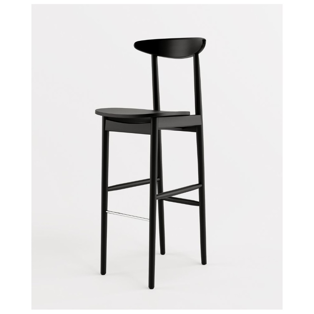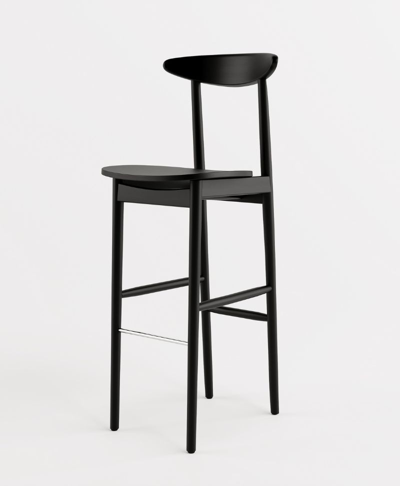 W pełni drewniany hoker barowy w kolorze głębokiej czerni to wyraz minimalistycznego podejścia do designu. Model ten zachwyca prostotą formy, idealnymi proporcjami i subtelnym wyprofilowaniem oparcia. Brak tapicerki sprawia, że całość prezentuje się niezwykle lekko wizualnie, a jednocześnie elegancko i solidnie.