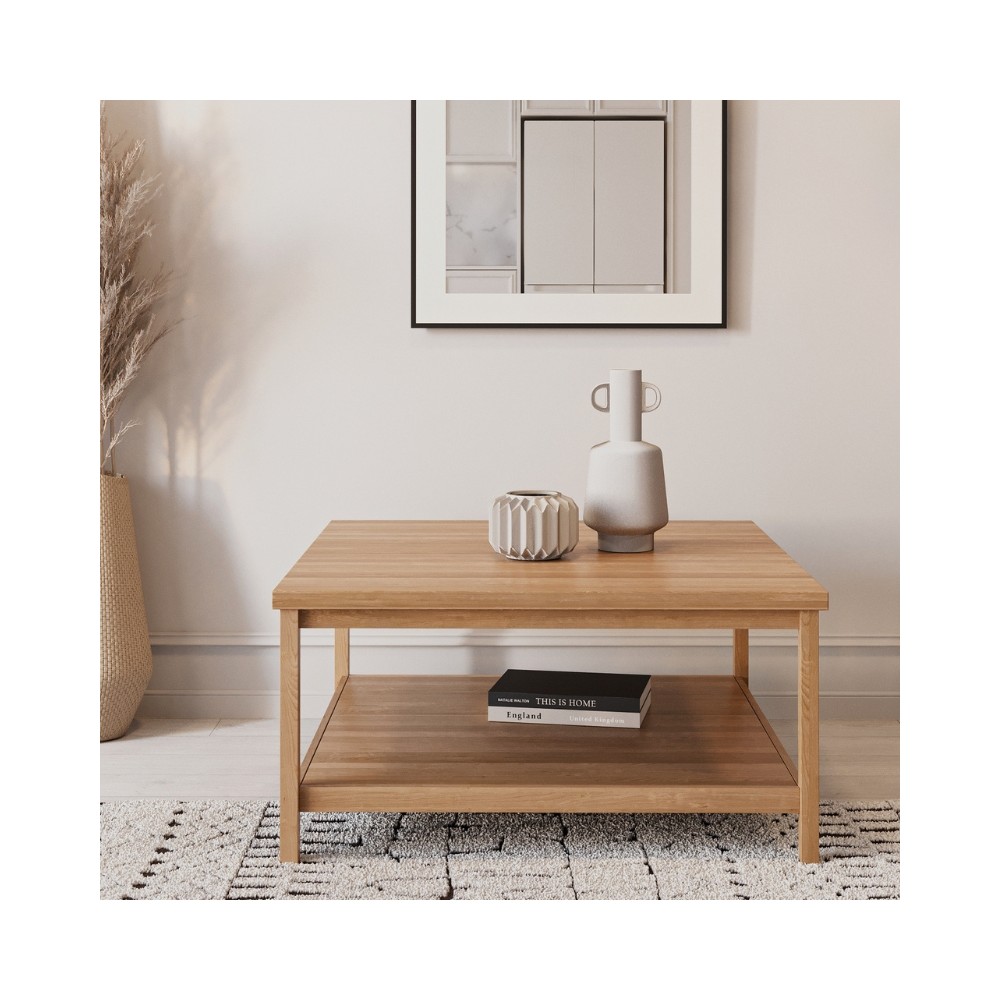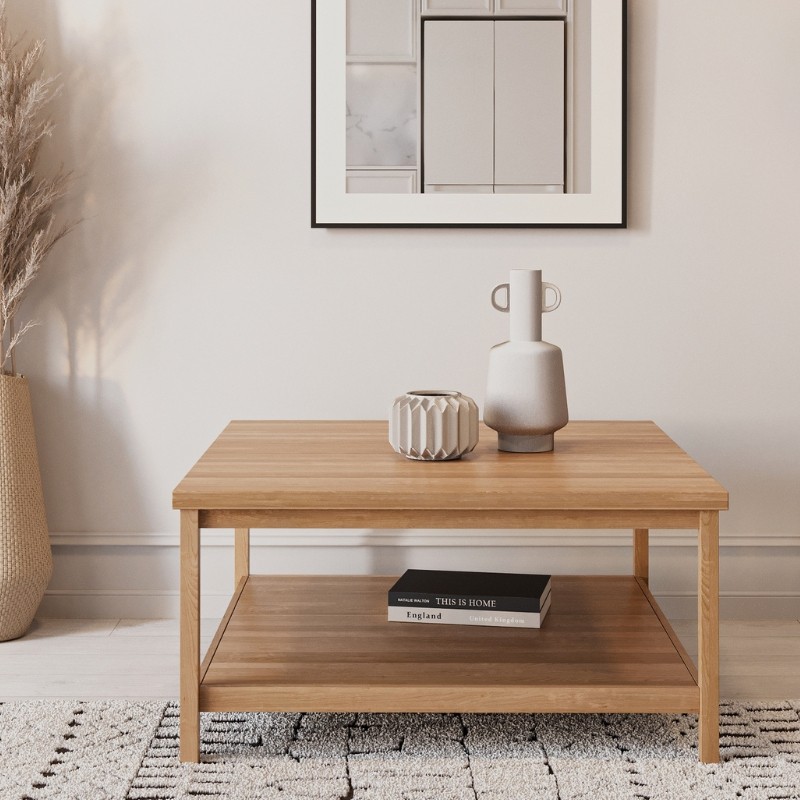 Przemyślana konstrukcja z dolną półką zapewnia dodatkowe miejsce do przechowywania książek, magazynów lub dekoracji, pomagając zachować porządek w salonie. Stabilny blat sprawdzi się idealnie podczas codziennego użytkowania – na kawę, dekoracje lub spotkania z bliskimi.