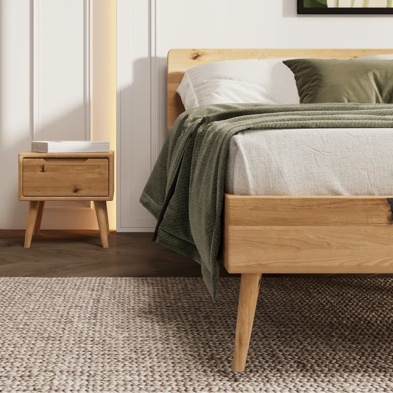 Dębowe łóżko w stylu retro jest dostępne również w zestawie z wygodnym materacem, dzięki czemu oszczędzisz pieniądze.