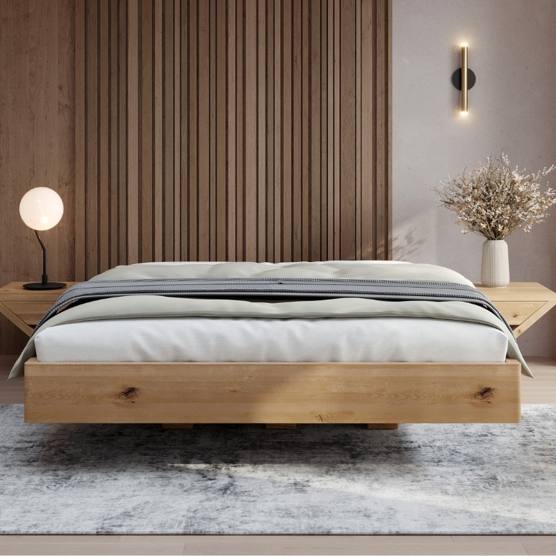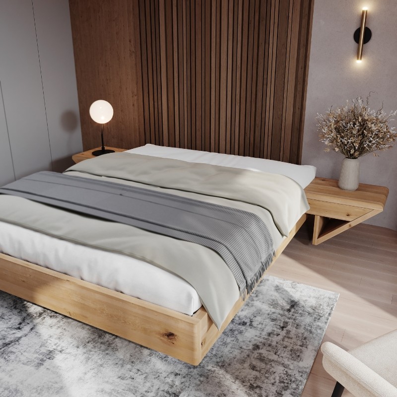 Łóżko ZEN Lite z dzikiego dębu – lewitująca forma, naturalna siła