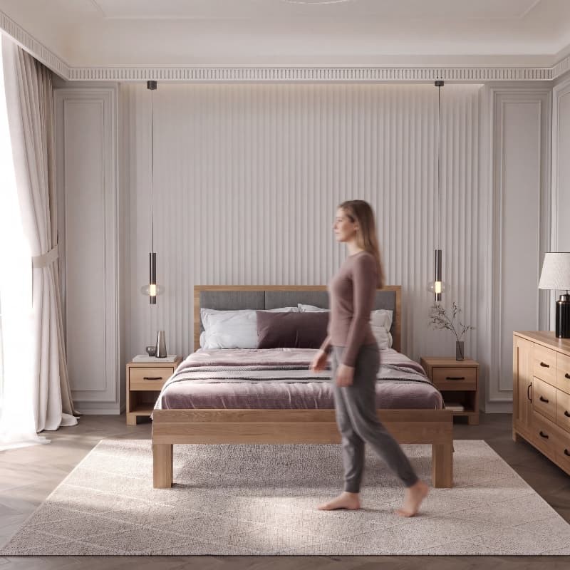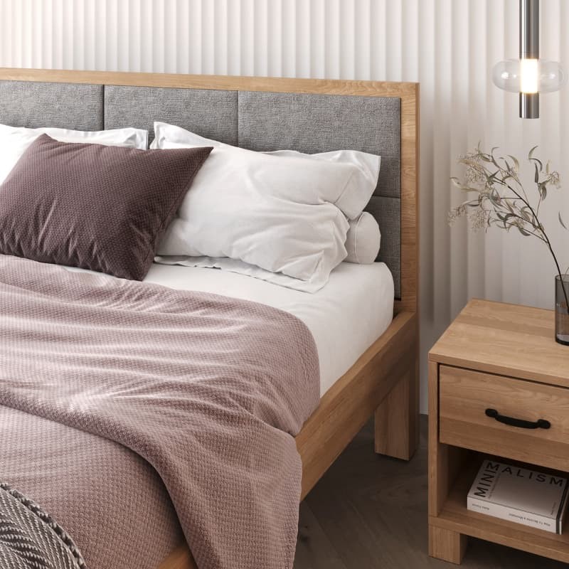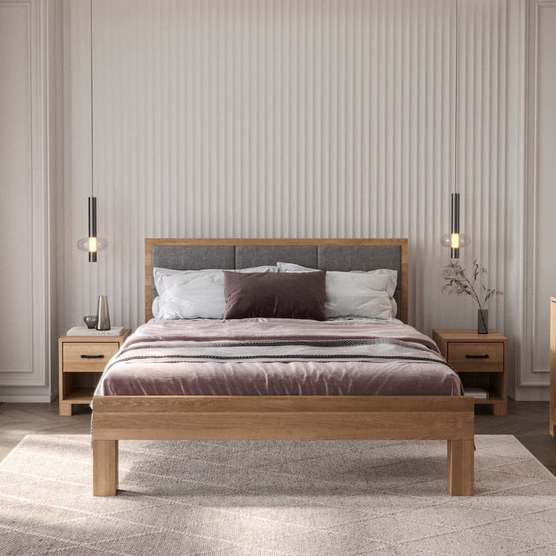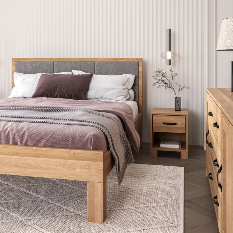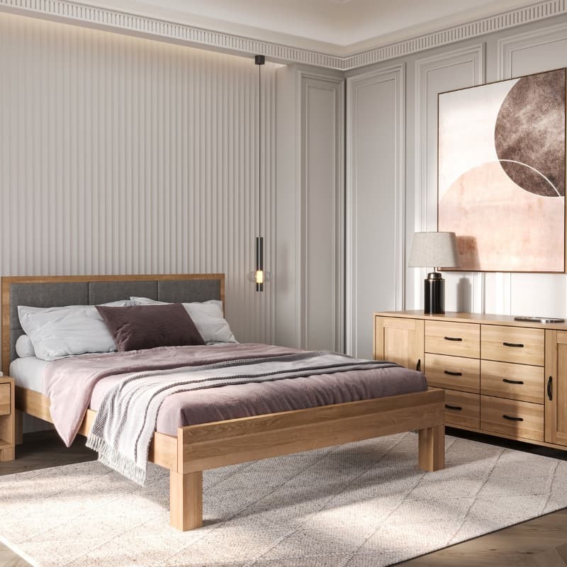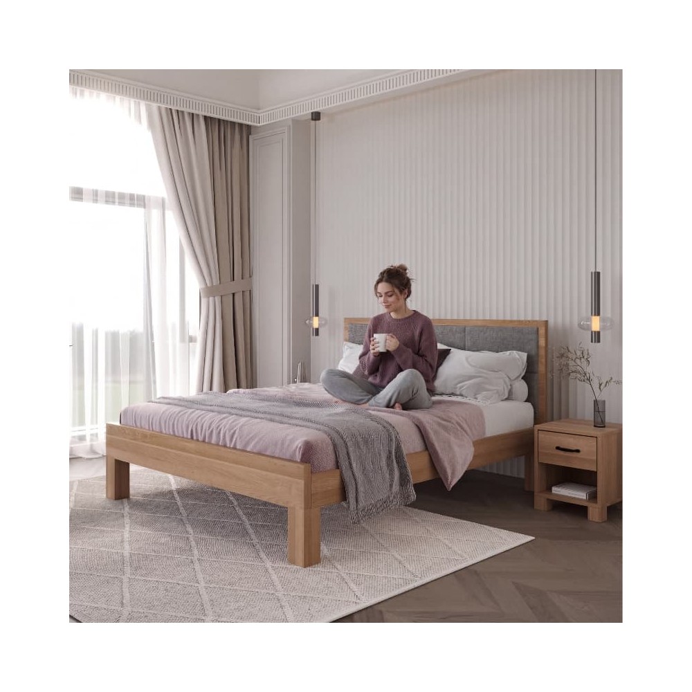 Łóżko dębowe z tapicerowanym wezgłowiem TEKO