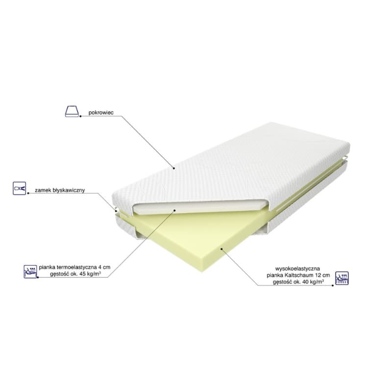 Dolna warstwa pianki wysokoelastycznej odpowiada za sprężystość, trwałość oraz stabilność konstrukcji. Materac nie zapada się nadmiernie i zachowuje swoje właściwości przez długi czas użytkowania.