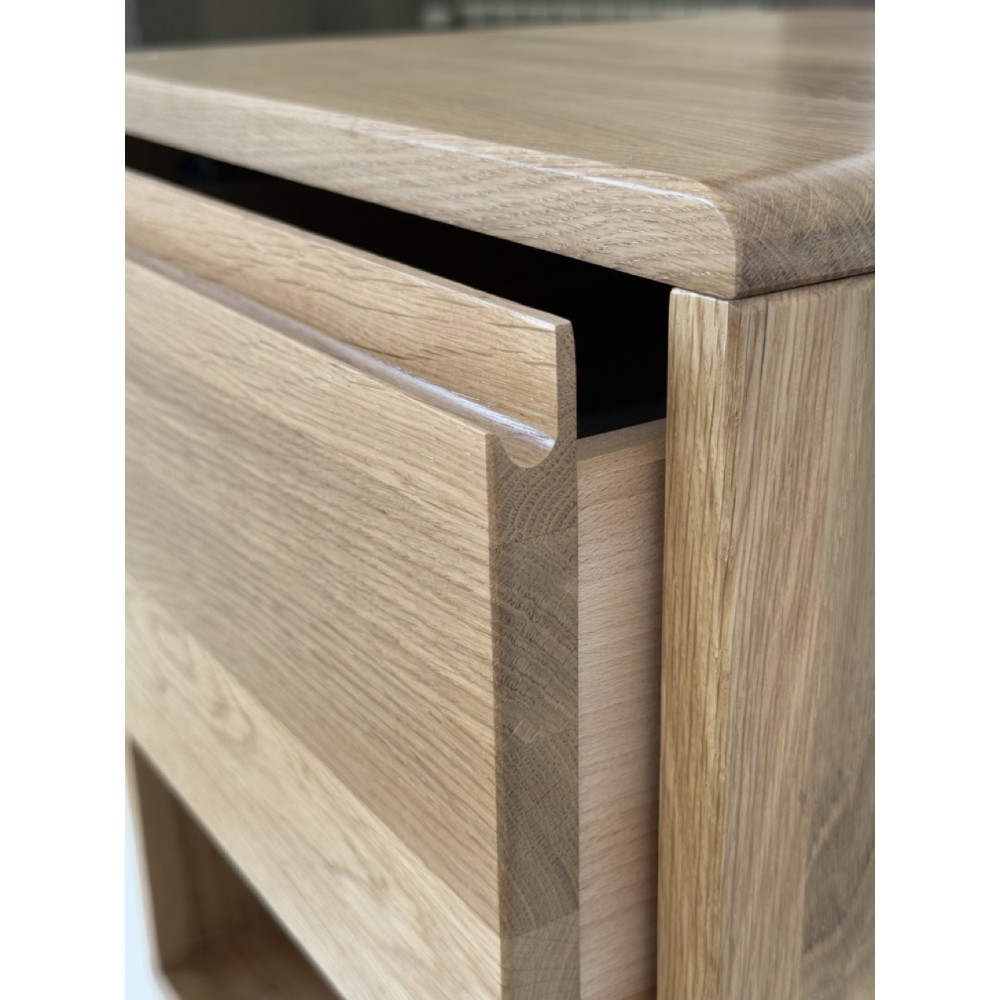Lite drewno dębowe, z którego wykonano korpus i fronty, wyróżnia się wyrazistym usłojeniem, szlachetnym kolorem i wyjątkową trwałością. Lakierowane wykończenie podkreśla naturalną strukturę drewna, zabezpieczając je jednocześnie przed codziennym użytkowaniem.