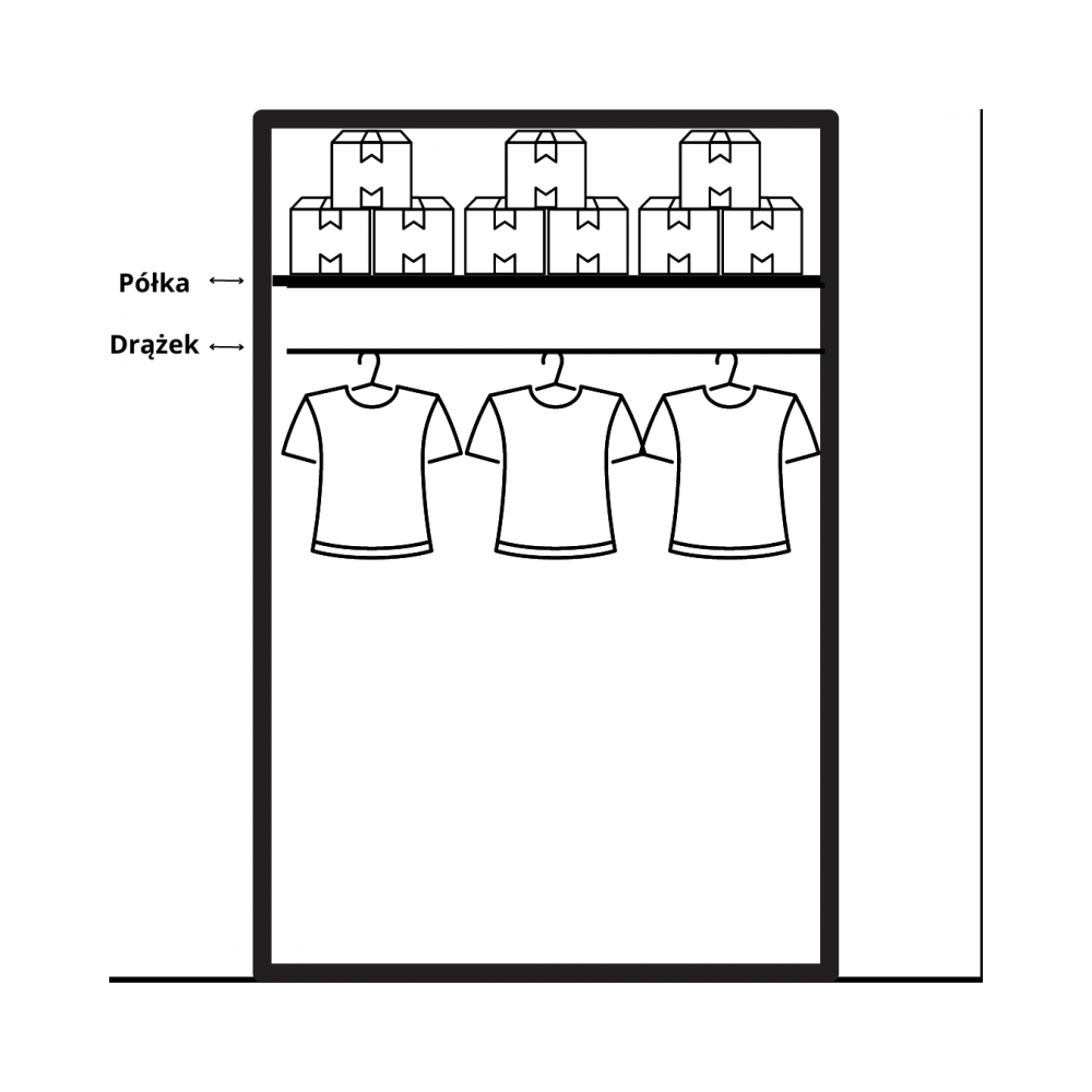 ✅ Prosty, funkcjonalny układ – przestrzeń na wieszaki i półki