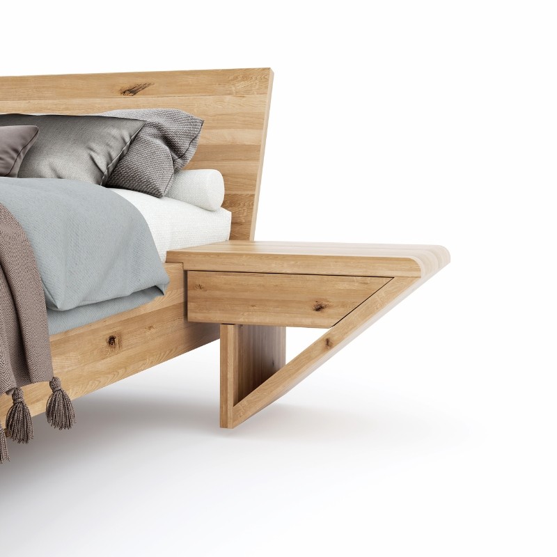 Szafka nocna ZEN z dzikiego dębu – lekka forma, naturalna siła. Prawa strona łóżka.