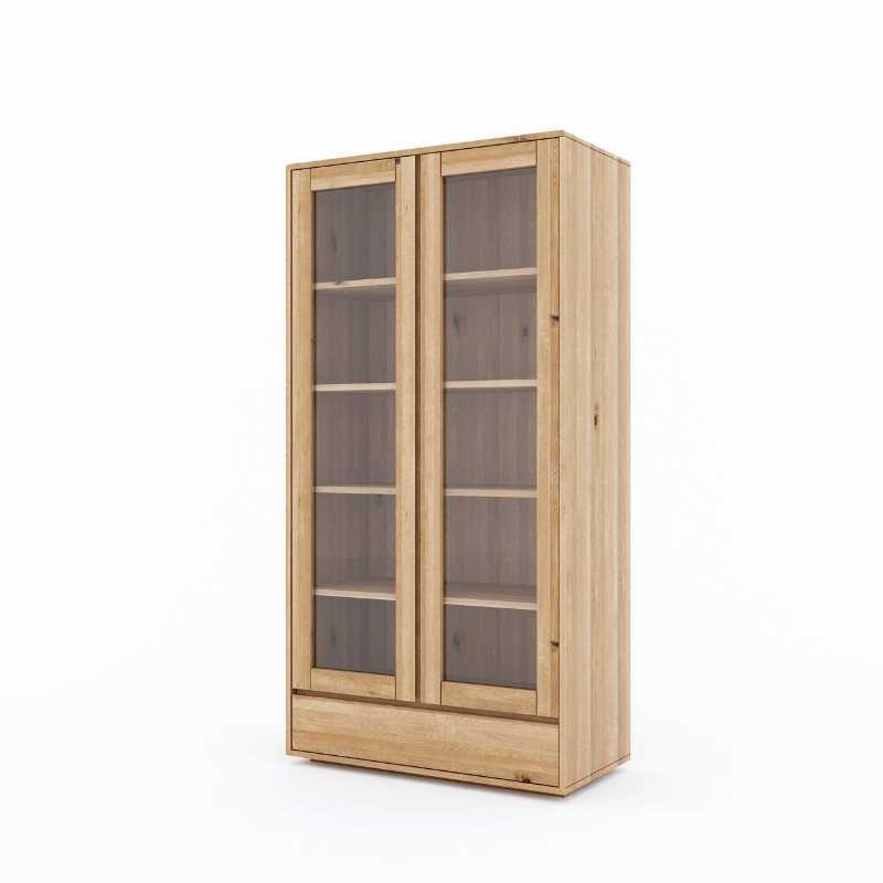 Dziki dąb to materiał o wyjątkowym usłojeniu, z widocznymi sękami, nieregularną strukturą i naturalnymi przebarwieniami. Każda witryna z tej serii jest unikalna – tworzona z drewna, które nie zostało “poprawione”, ale właśnie przez to urzeka prawdziwym charakterem. Lakierowana powierzchnia wydobywa głębię koloru i jednocześnie chroni mebel przed codziennym użytkowaniem.