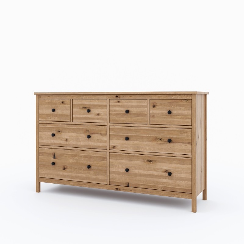 Mebel wykonany z litego drewna dębowego ( dziki dąb z sękami wypełnionymi czarną żywicą ). Wykończony lakierem dla właściwego zabezpieczenia. Wszystkie nasze meble drewniane w standardzie wyposażone są w prowadnice ( szuflady ) i zawiasy ( drzwiczki ) na Cichy domyk. Jest to bardzo wygodne rozwiązanie, które pozwala cieszyć się z produktu przez długie lata.