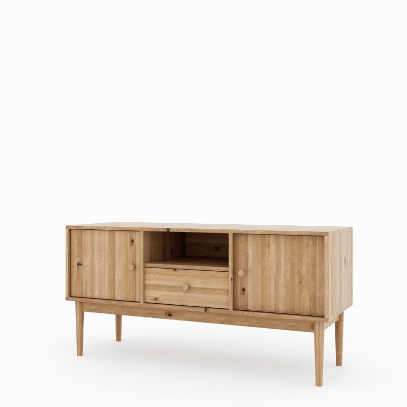 Szafka RTV Oslo 2D+1 to doskonały wybór dla miłośników naturalnych materiałów, skandynawskiego minimalizmu i polskiego rzemiosła, którzy oczekują zarówno elegancji, jak i praktyczności.