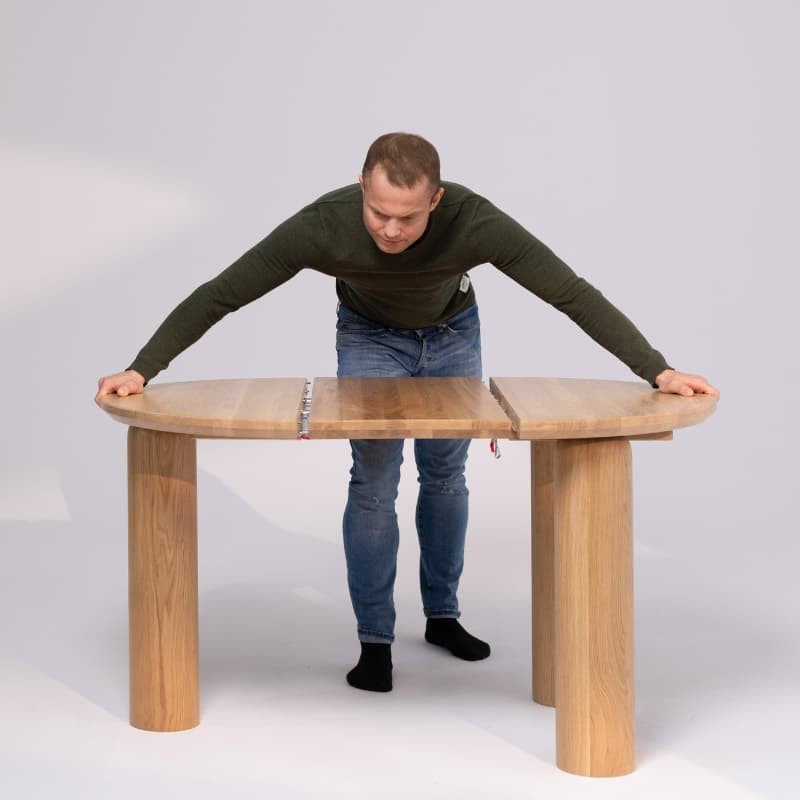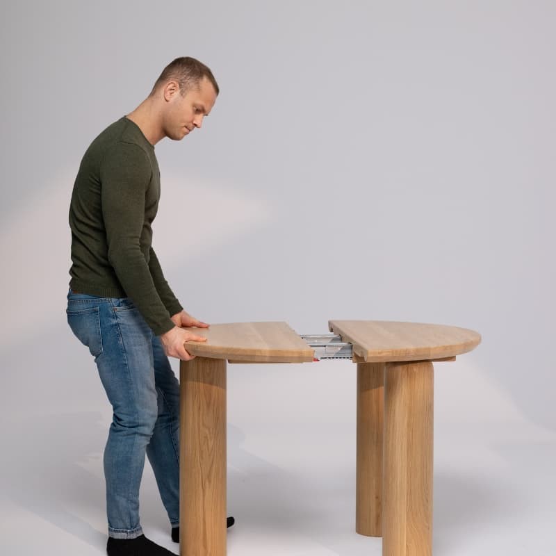Jestem bardzo zadowolony z zakupu stołu MOON. Na żywo wygląda świetnie – dąb ma piękne usłojenie, a całość jest solidna i stabilna. Duży plus za funkcję rozkładania – na co dzień kompaktowy, a przy gościach bardzo praktyczny. Polecam!