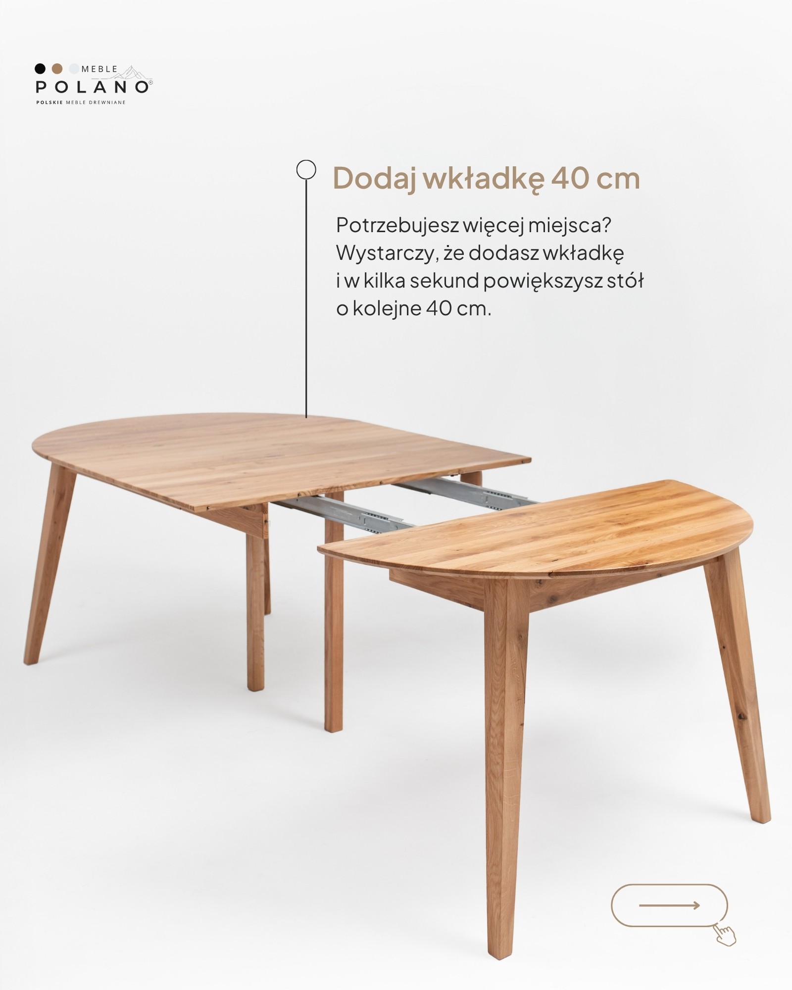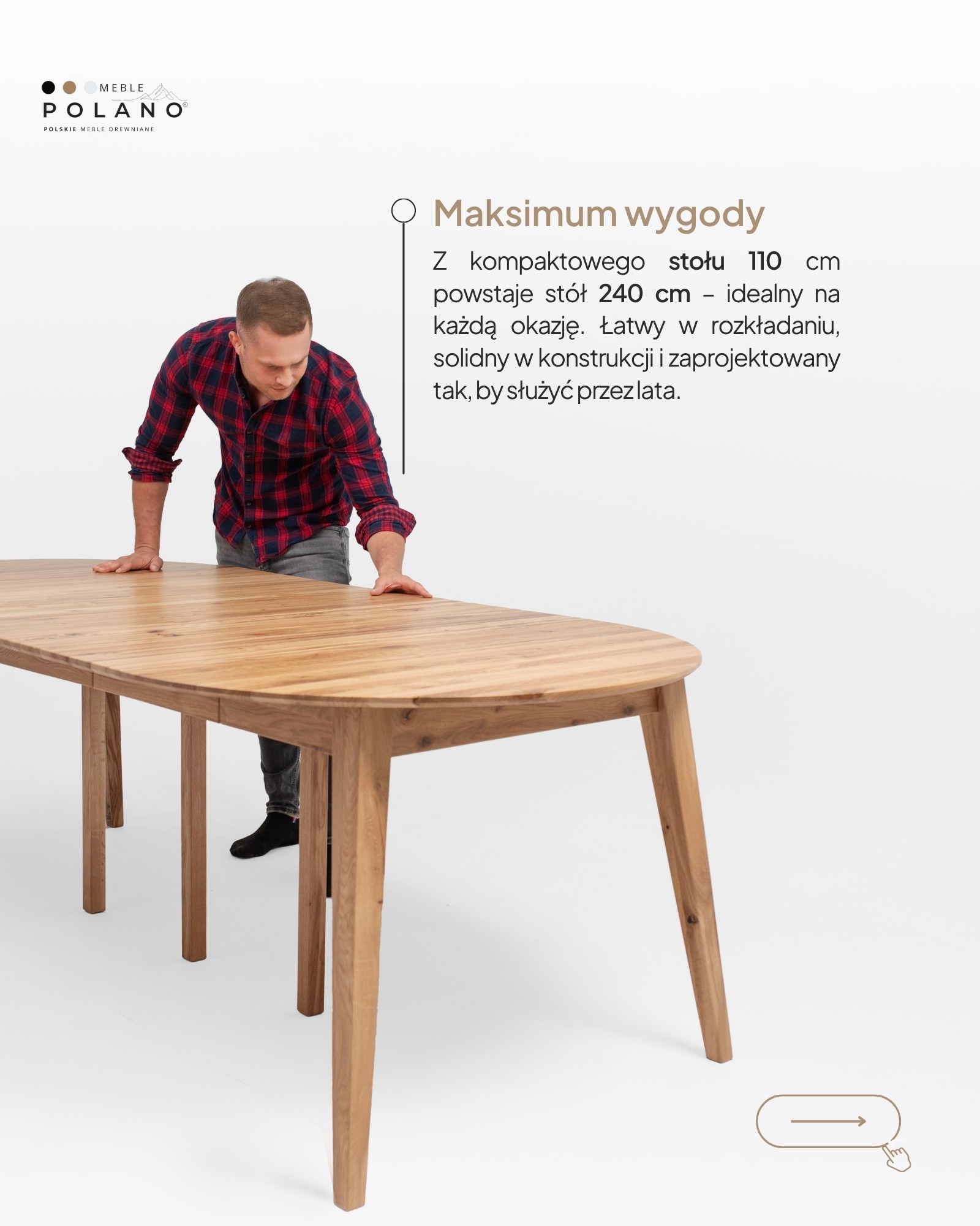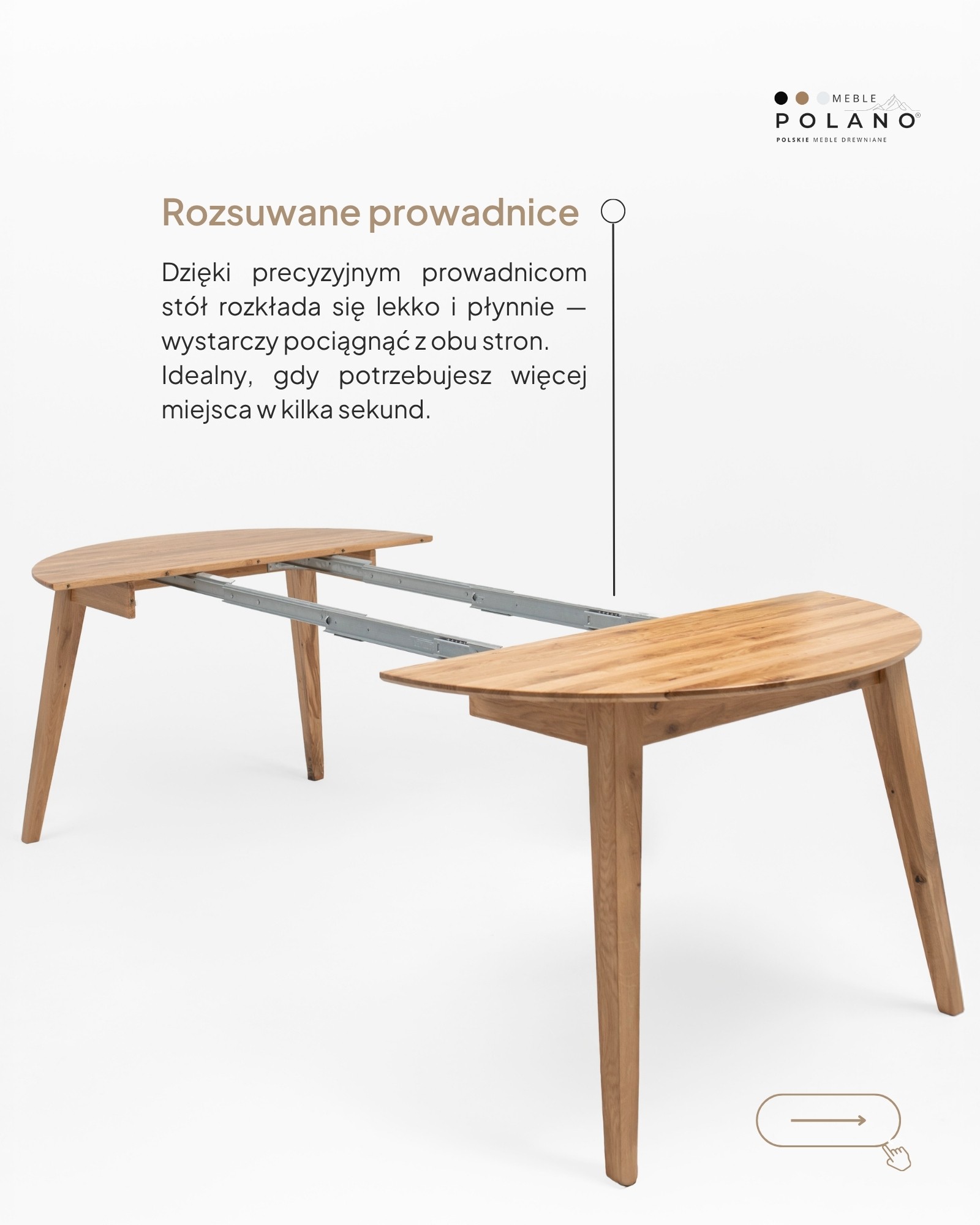Dzięki możliwości rozsunięcia blatu i dodania wkładki, stół błyskawicznie staje się bardziej pojemny – idealny na rodzinne obiady, przyjęcia lub wieczory z przyjaciółmi.