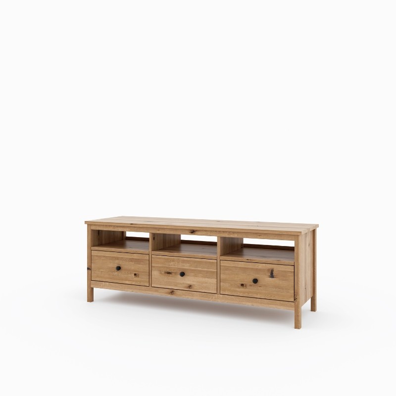 Mebel wykonany z litego drewna dębowego ( dziki dąb z sękami wypełnionymi czarną żywicą ). Wykończony lakierem dla właściwego zabezpieczenia. Wszystkie nasze meble drewniane w standardzie wyposażone są w prowadnice ( szuflady ) i zawiasy ( drzwiczki ) na Cichy domyk. Jest to bardzo wygodne rozwiązanie, które pozwala cieszyć się z produktu przez długie lata.